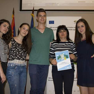 Додели награда која је одржана 28. маја 2018. године у просторијама инфо центра ЕУ у Београду присуствовао је део тима који је учествовао у изради представничког рада Гимназије заједно са својим ментором.